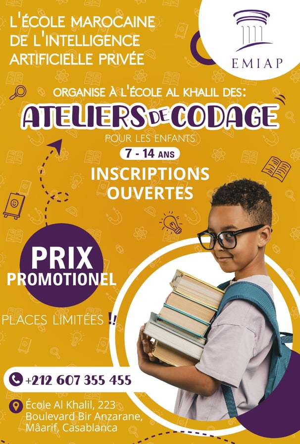 Ne cherchez pas plus loin ! EMIAP est là pour ouvrir les portes de l'intelligence artificielle et de la robotique à vos enfants âgés de 7 à 14 ans.
